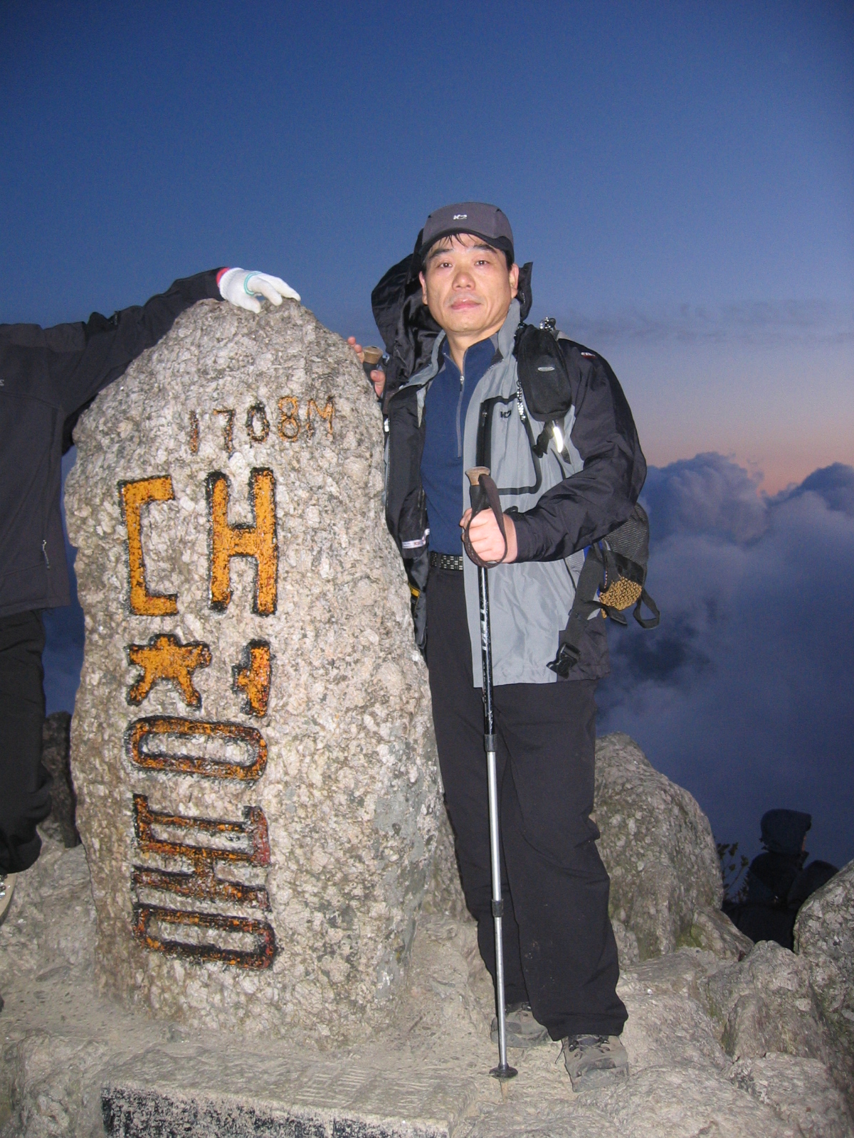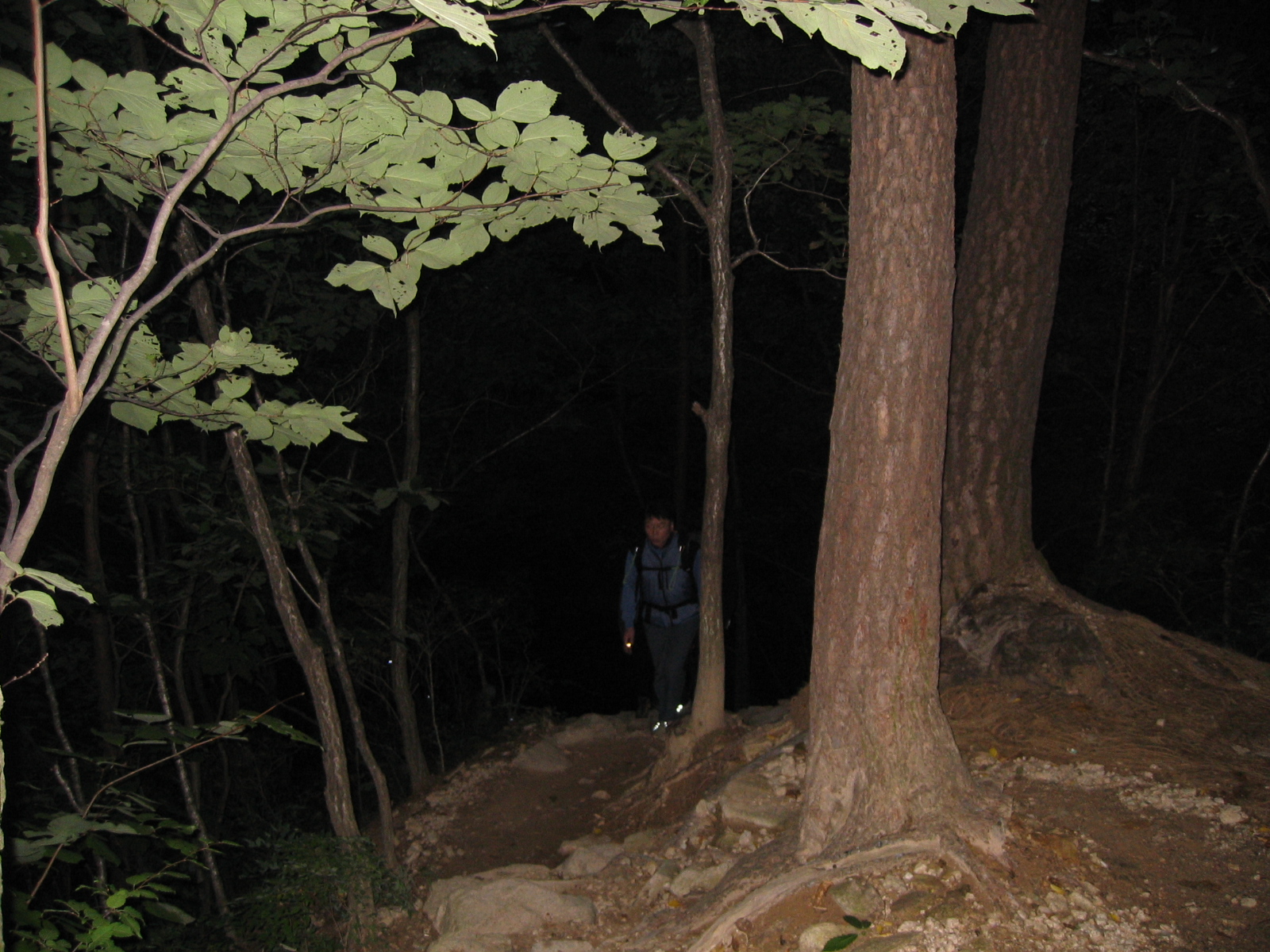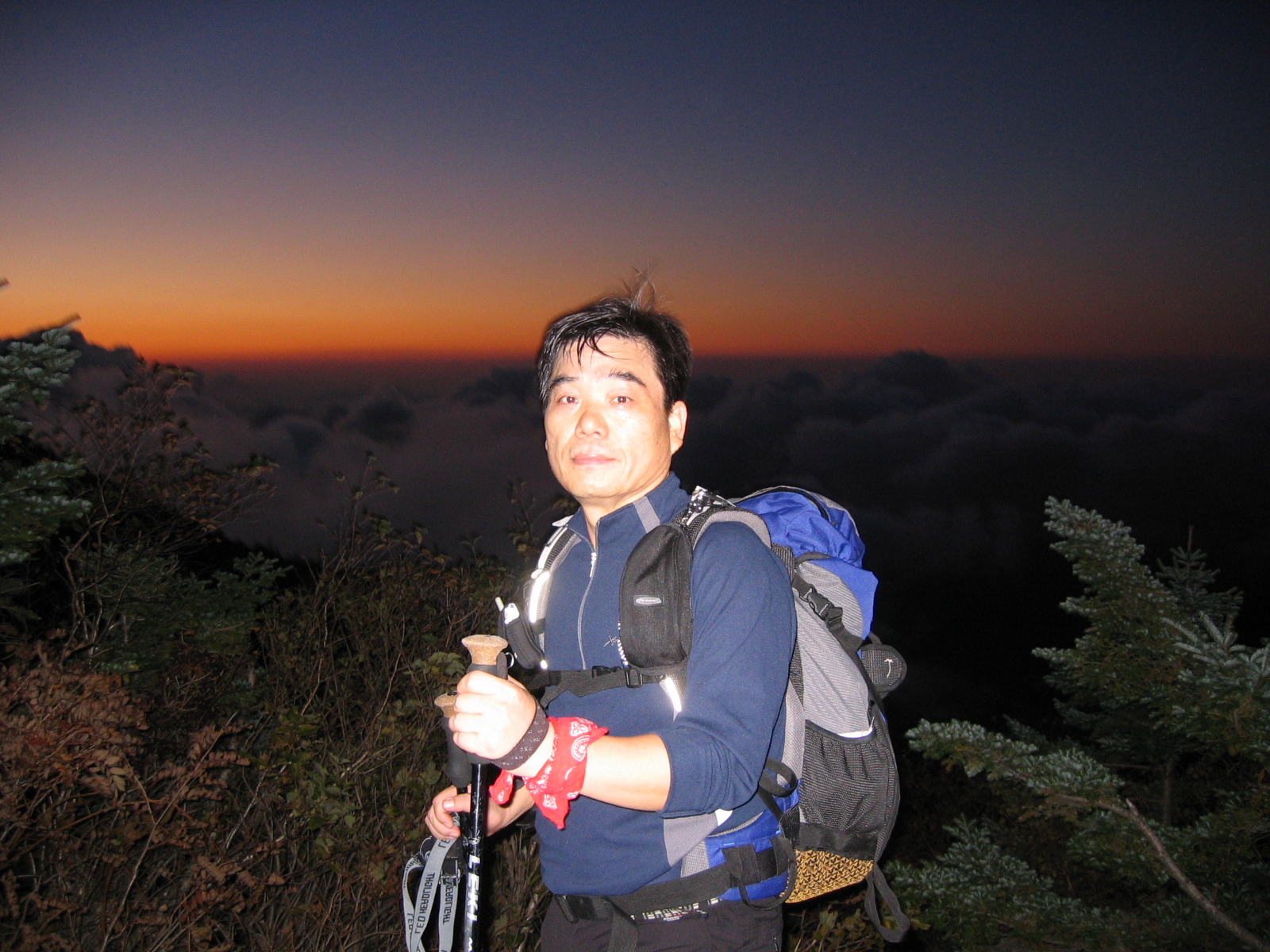 2시간40분만에 정상에 올라 몇차례의 새벽산행중 처음으로 일출을 볼 기대감에 기분이 잔뜩 부풀어 있었지만 결국 구름과 안개가 태양과 함께 올라오는 바람에 또 그 꿈을 접어야만 했다.
