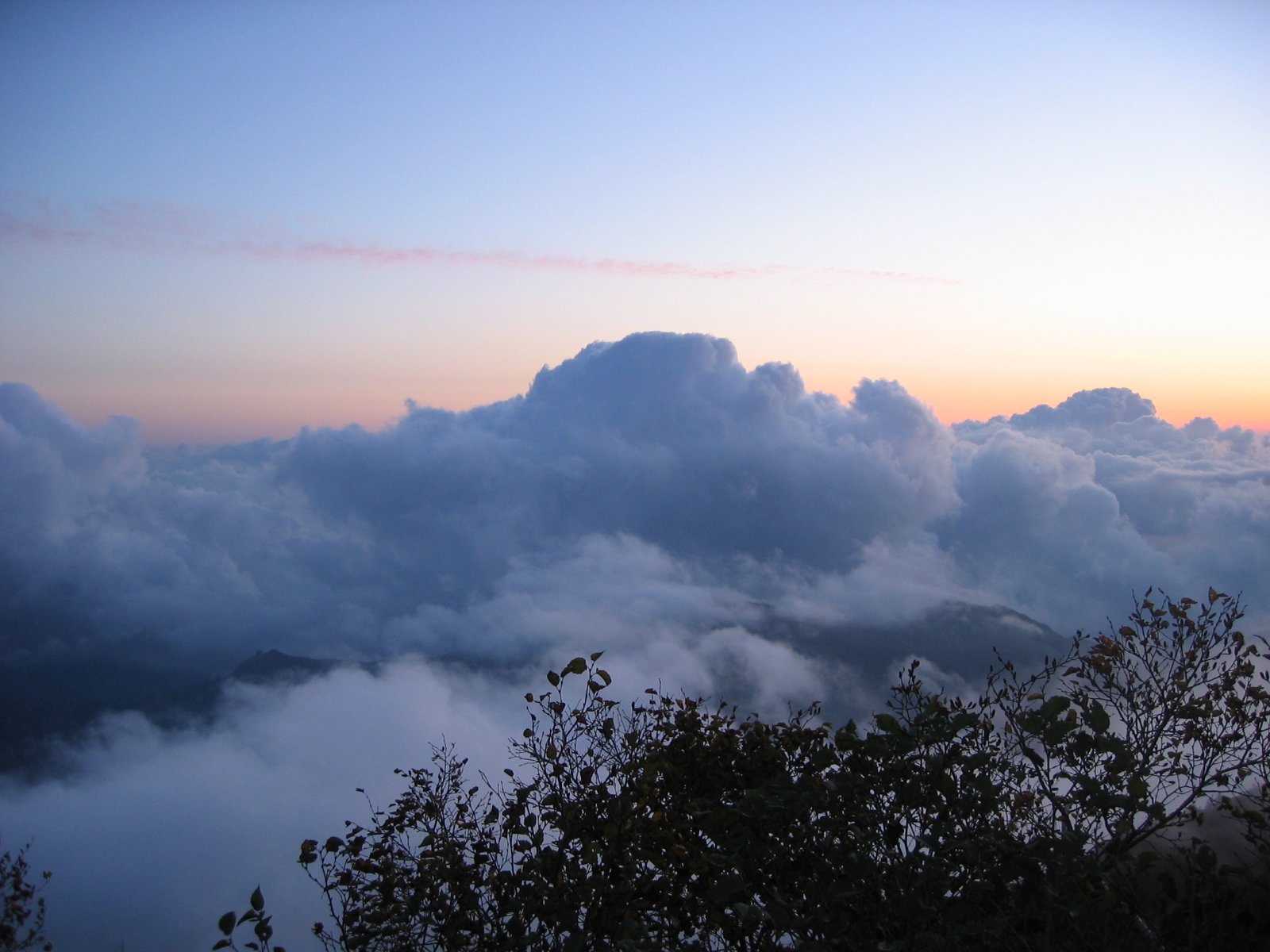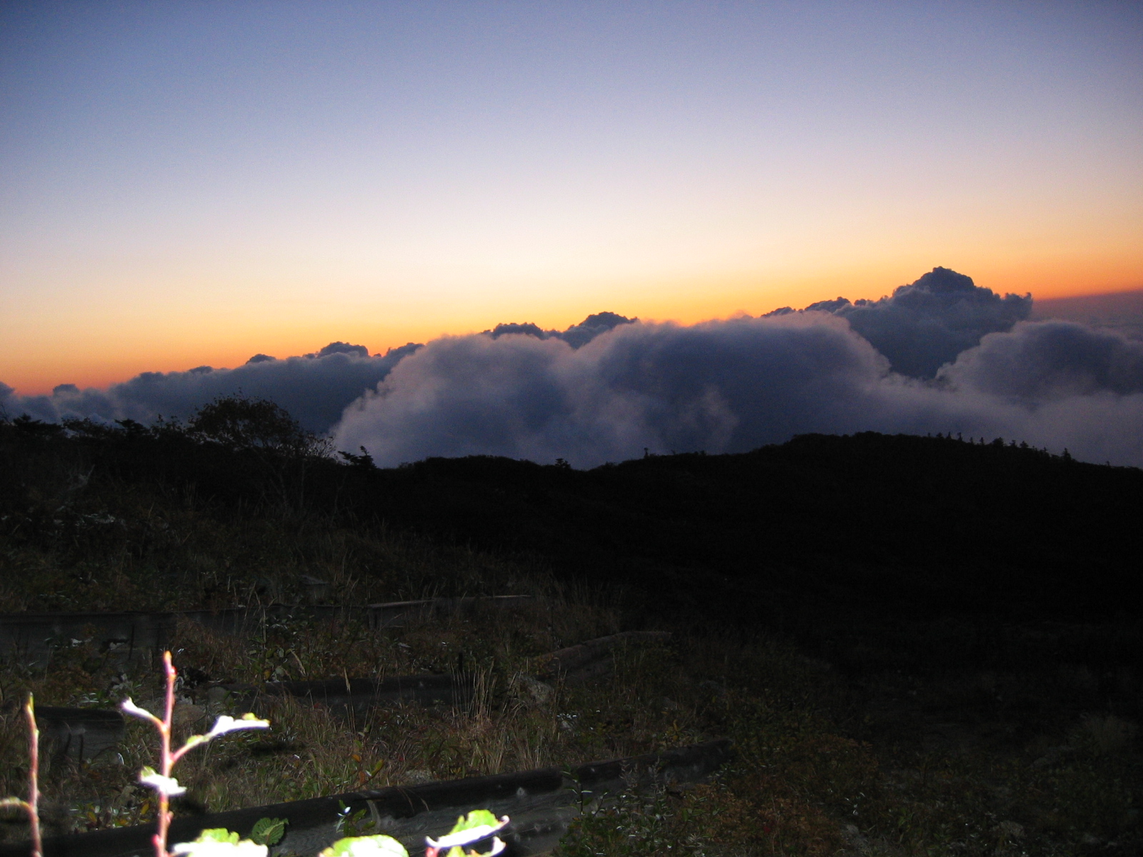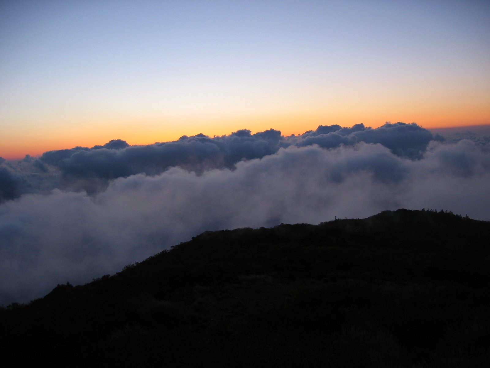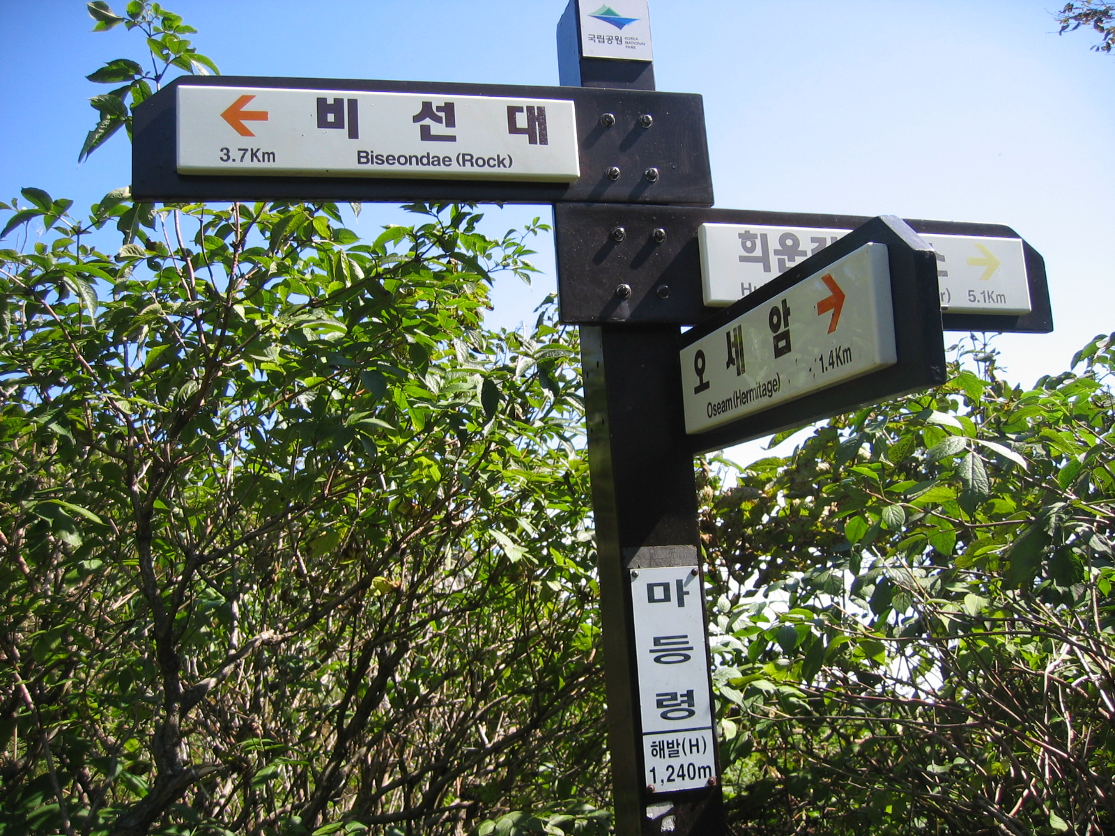2시간40분만에 정상에 올라 몇차례의 새벽산행중 처음으로 일출을 볼 기대감에 기분이 잔뜩 부풀어 있었지만 결국 구름과 안개가 태양과 함께 올라오는 바람에 또 그 꿈을 접어야만 했다.