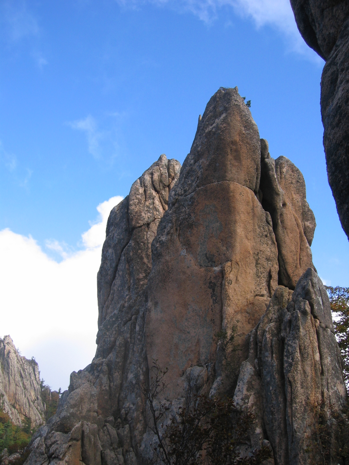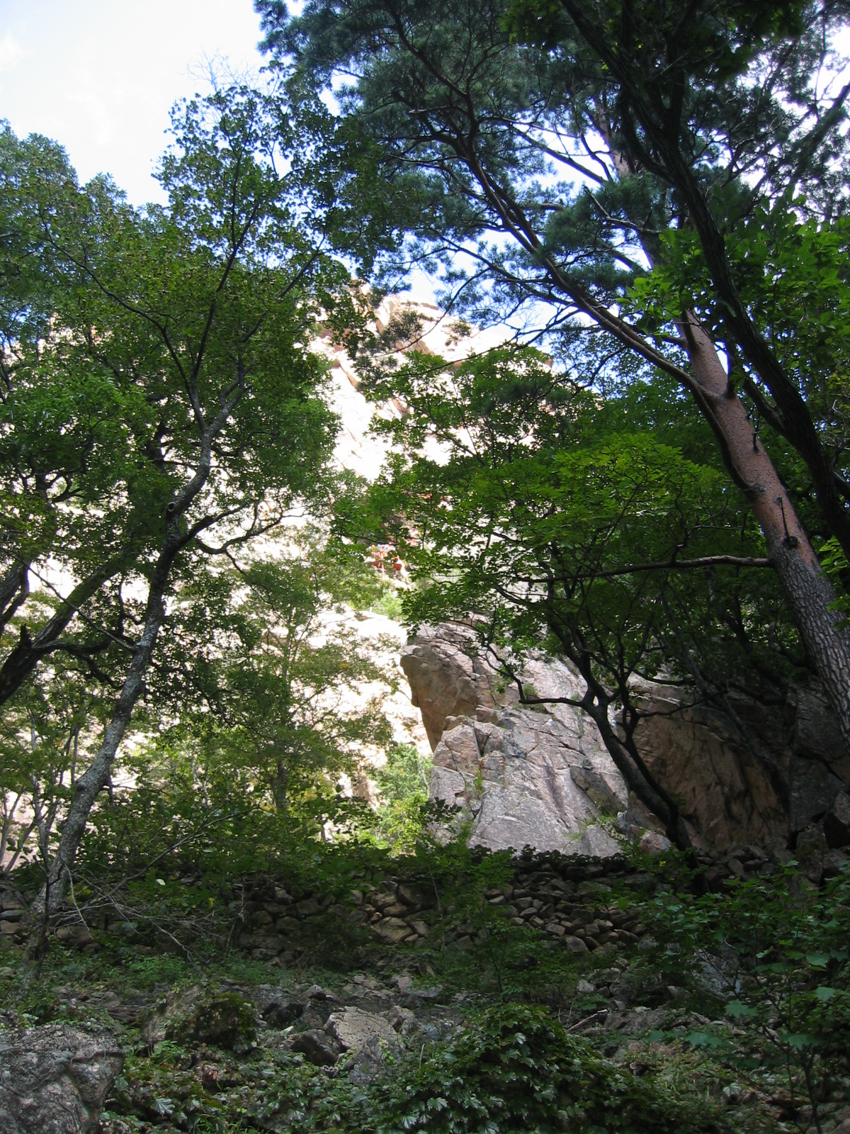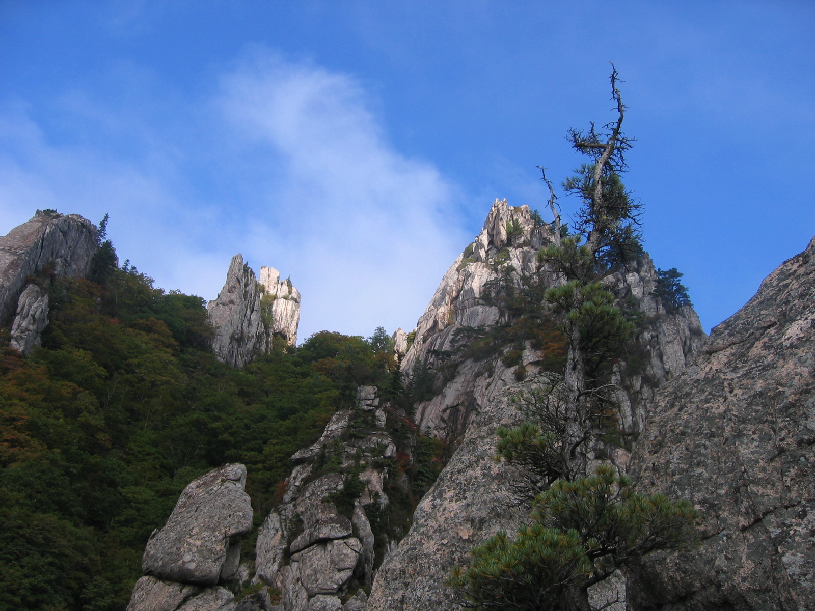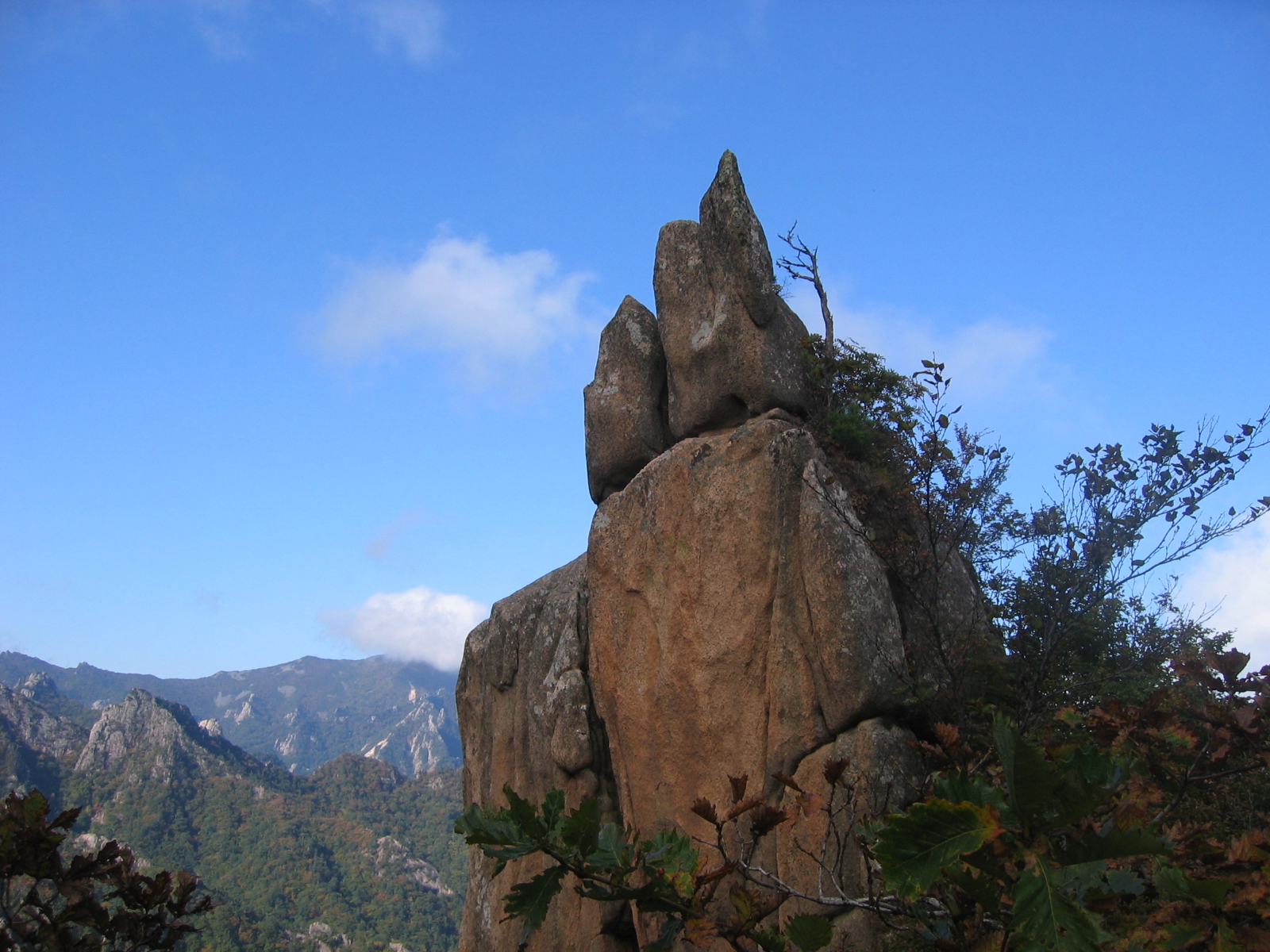 마등령에서 하산길 금강굴 직전의 기묘한 바위모습과 금강굴이 보이는 비선대